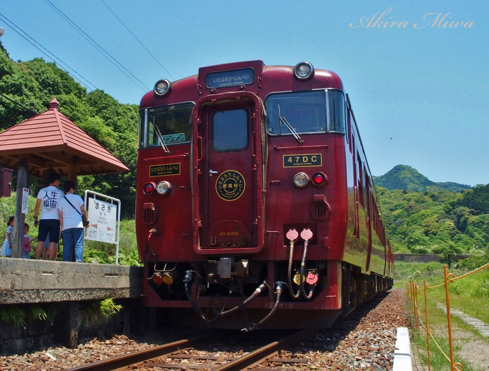 まもなく「はやとの風号」がやってきた。ただ急いで乗る必要はない。観光用に数分間停車するからだ。