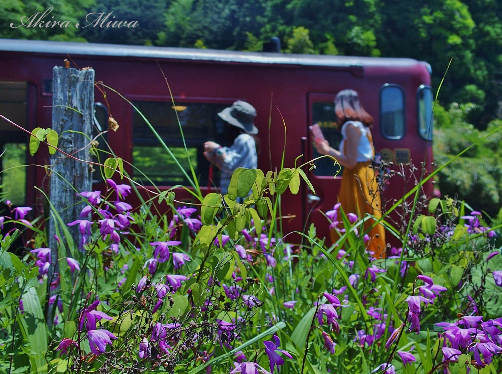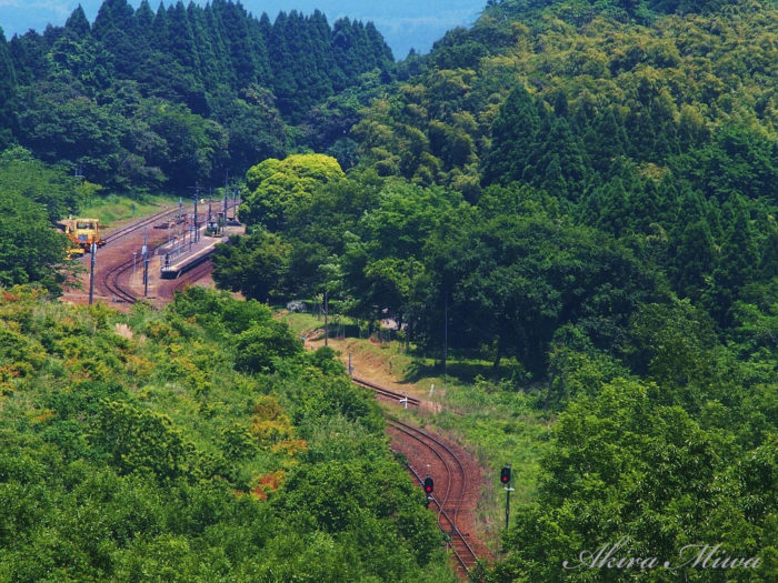 その途中の大畑駅。「おこば」と呼ばせるスイッチバックのある駅で、鉄道ファンに人気が高い。こんな風にね。☆[゜ー^]